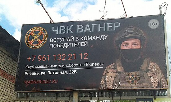Outdoor do Grupo Wagner, provavelmente recrutando pessoas para a guerra na Ucrânia