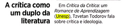 Jornal do Commércio do Recife indica Crítica da crítica, de Todorov, em sua edição de 01/12/15, Caderno C, página 2.