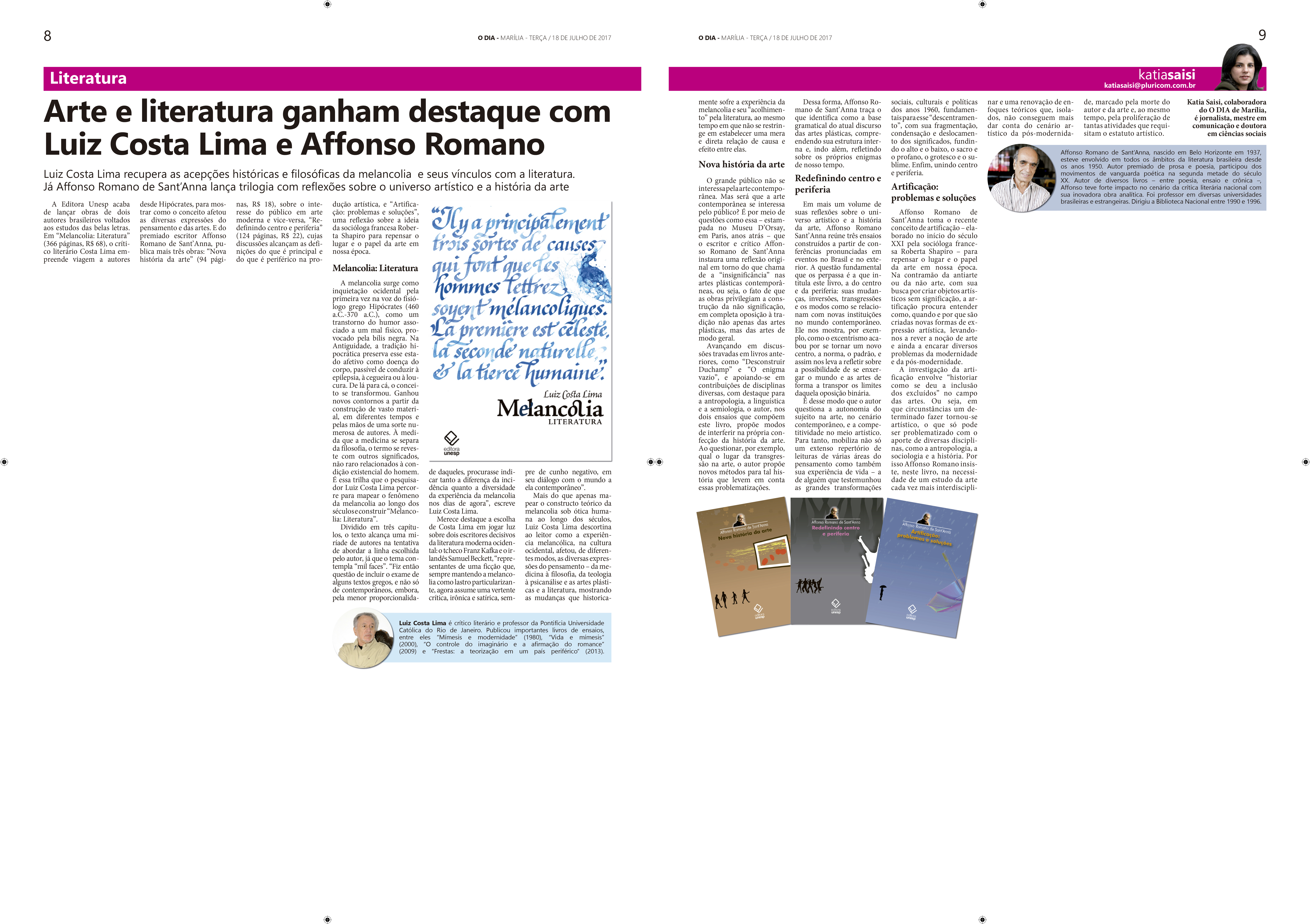 O jornal O Dia de Marília, em sua edição de 18 de julho de 2017, destacou os lançamentos Melancolia: Literatura, de Luiz Costa lima e os livros de Affonso Romano Nova história da arte, Redefinindo centro e periferia e Artificação: problemas e soluções.