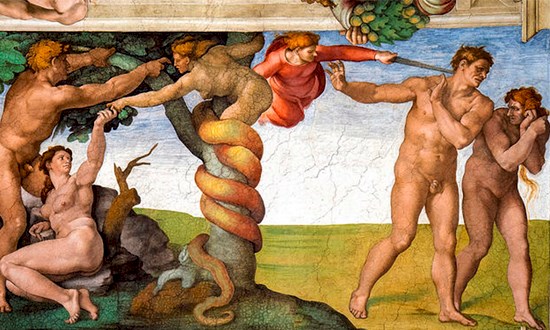 “Adão e Eva, assim como a maçã, há muito foram adotados pelo mundo secularizado, com finalidades contraditórias: Adão fez o papel de porta-voz revolucionário nos movimentos milenaristas, enquanto na política o pecado original foi um argumento eficaz para os contrarrevolucionários e os pensadores tradicionalistas como Joseph de Maistre”, escreve Minois. “De Kant a Sartre, os grandes filósofos adaptaram o mito da queda e da corrupção da espécie. Atualmente, os debates sobre a bioética, que gravitam em torno da natureza humana, voltam a lhe dar atualidade, no momento em que se considera o aparecimento de um novo Adão, que seria uma versão geneticamente modificada do primeiro: um homem revisto, corrigido e aprimorado por ele mesmo, curado das feridas infligidas pelo pecado original.”