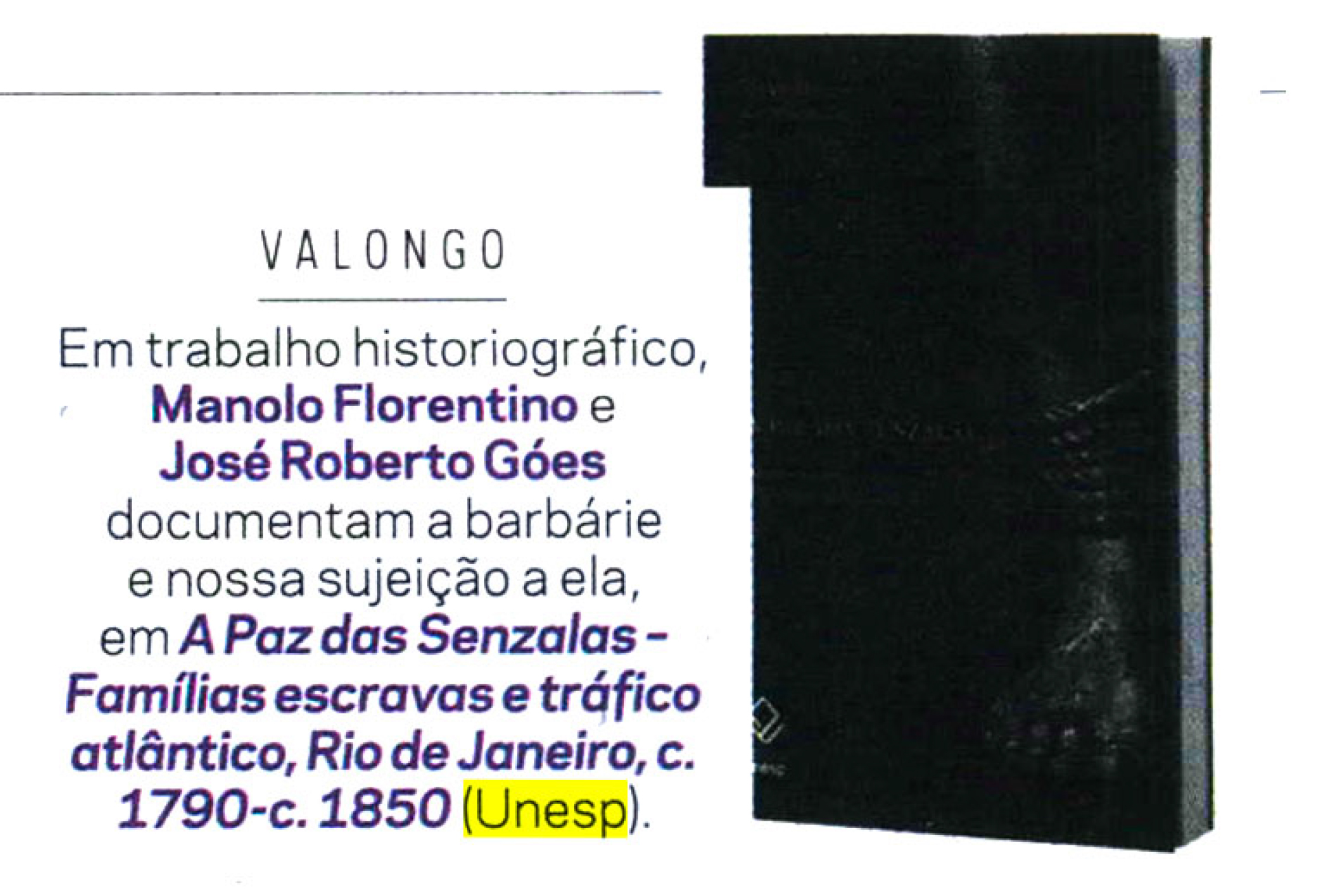 A revista Carta Capital, em sua edição de 27 de setembro, indicou a leitura do lançamento A paz das senzalas, de Manolo Florentino e José Roberto Góes. Confira a publicação abaixo: