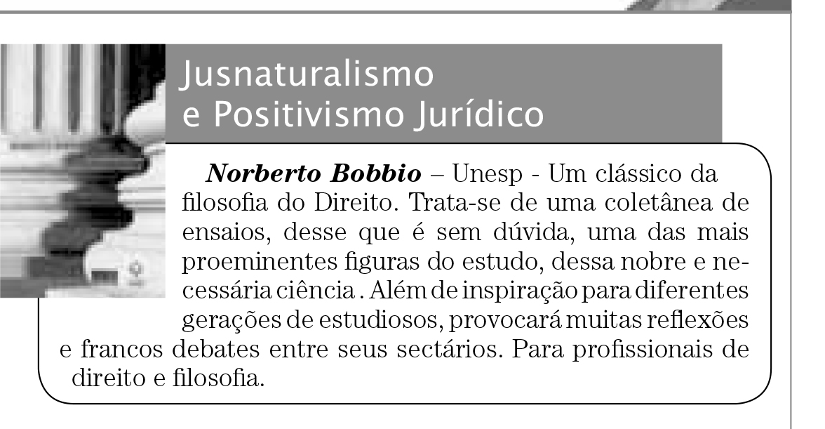 Ralph Peter indica em sua coluna Livros em Revista, no jornal Empresas & Negócios, o livro Jusnaturalismo e positivismo jurídico, de Norberto Bobbio.