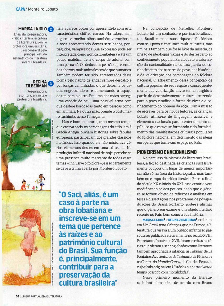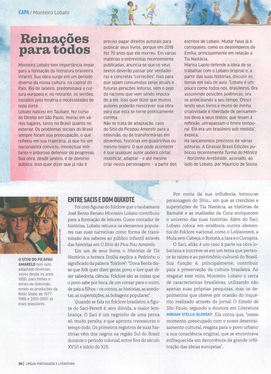 A revista Conhecimento Prático Língua Portuguesa e Literatura, em matéria sobre a produção de Monteiro Lobato, destacou o livro Monteiro Lobato, livro a livro: obra infantil, org. por Marisa Lajolo e João Luís Ceccantini.