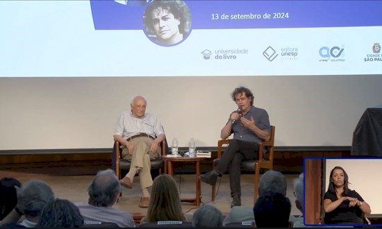 Rubens Ricupero e Manuel da Costa Pinto durante Encontro com os escritores