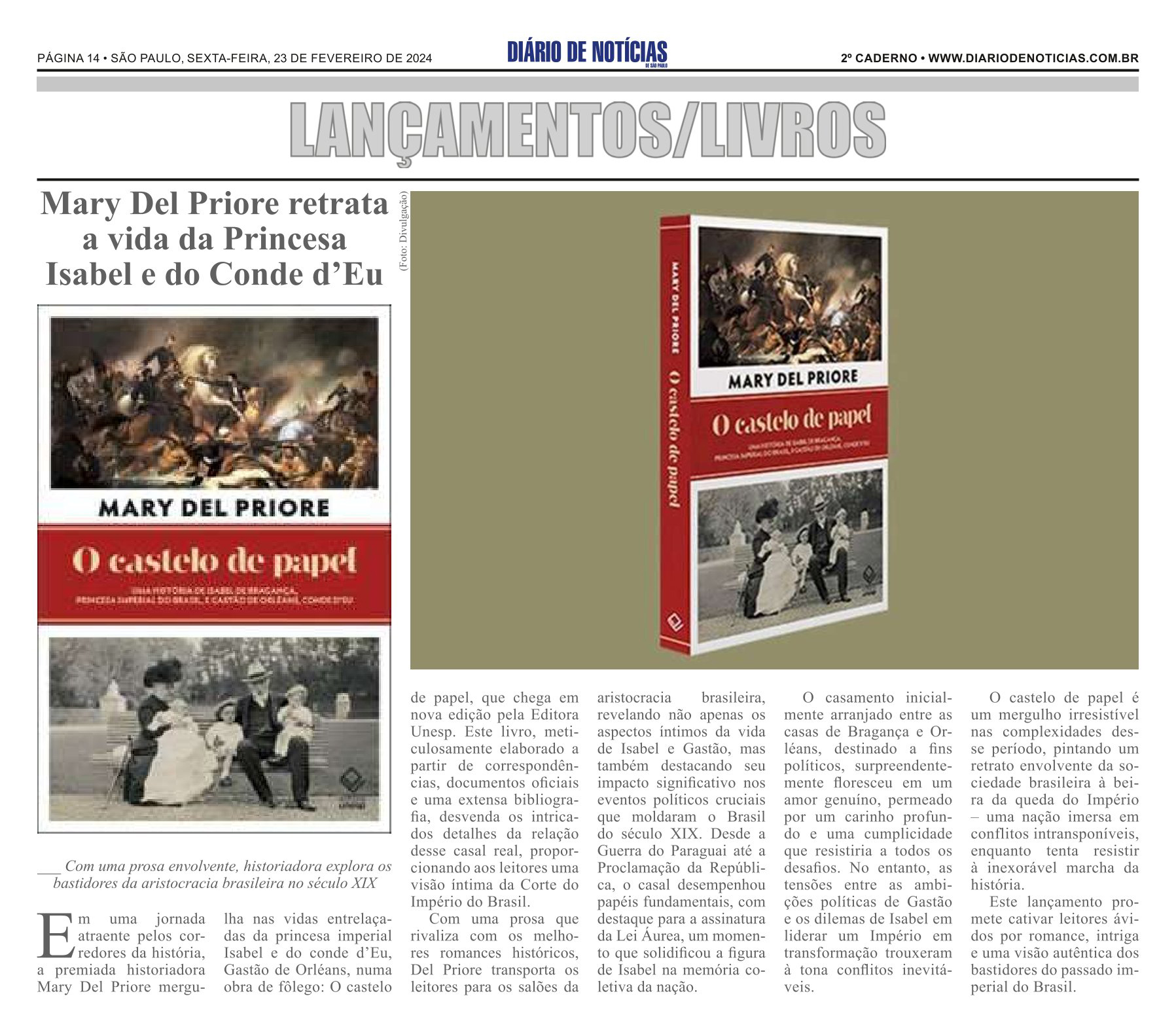 O periódico Diário de Notícias recomendou o livro O castelo de papel,escrito pela historiadora Mary Del Priore e que chegou em nova edição pela Editora Unesp.