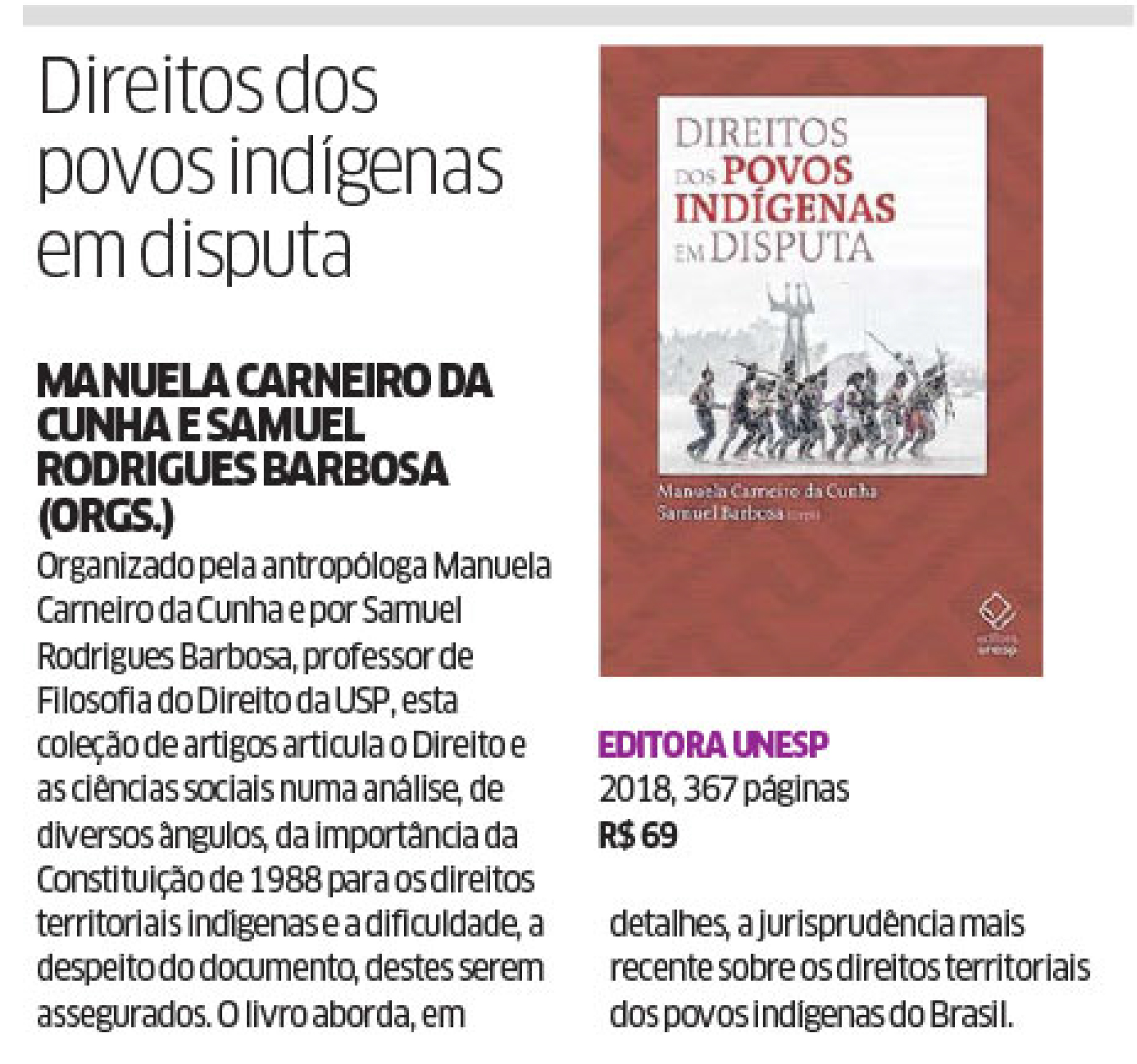 O Diário do Nordeste, em sua edição de 26 de maio, recomendou a leitura do lançamento Direitos dos povos indígenas em disputas, organizado por Manuela Carneiro da Cunha e Samuel Rodrigues Barbosa. O livro enfoca o marco da Constituição de 1988 para os direitos territoriais indígenas. A Constituição foi seguramente um marco ao assumir os povos indígenas como portadores de formas de vida com direito ao futuro, não mais como resquícios do passado em vias de extinção. Mais e mais o Judiciário, a começar pelo STF, também reinterpretaram a Constituição como um marco específico, o chamado marco temporal. No entanto, essa interpretação, paradoxalmente, proíbe o direito ao futuro de muitos povos. A crítica às recentes interpretações judiciais unifica as contribuições deste livro.