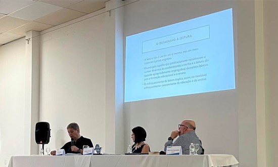 Ao lado dos professores João Luís Ceccantini e Débora Cristina Fonseca, Gutierre abordou os desafios da formação docente no Brasil e o papel da leitura no processo educativo. Em sua fala, destacou a responsabilidade das universidades públicas, em especial da Unesp, na ampliação do acesso ao conhecimento.