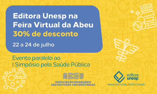 A Editora Unesp participa da Feira Virtual da Abeu, que ocorre simultaneamente ao I Simpósio pela Saúde Pública, oferecendo 30% de desconto em mais de 50 obras de autores como Harmut Rosa, Aristóteles, Franklin de Mattos, Dominique Kalifa, Marisa Lajolo, Regina Zilberman, Bruno Latour, Peter Burke, Theodor Adorno e muito mais. A promoção é válida até 24 de julho, sexta-feira.