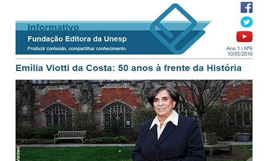 A edição desta semana do Informativo da Fundação Editora da Unesp destaca as obras e a trajetória da historiadora Emília Viotti da Costa, que será homenageada no no Simpósio História Viva do Brasil.