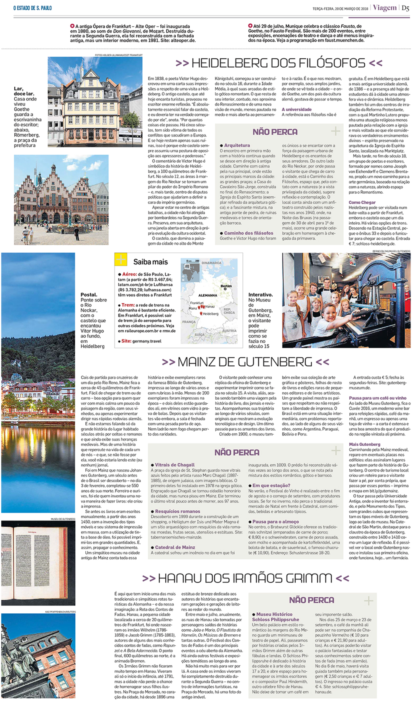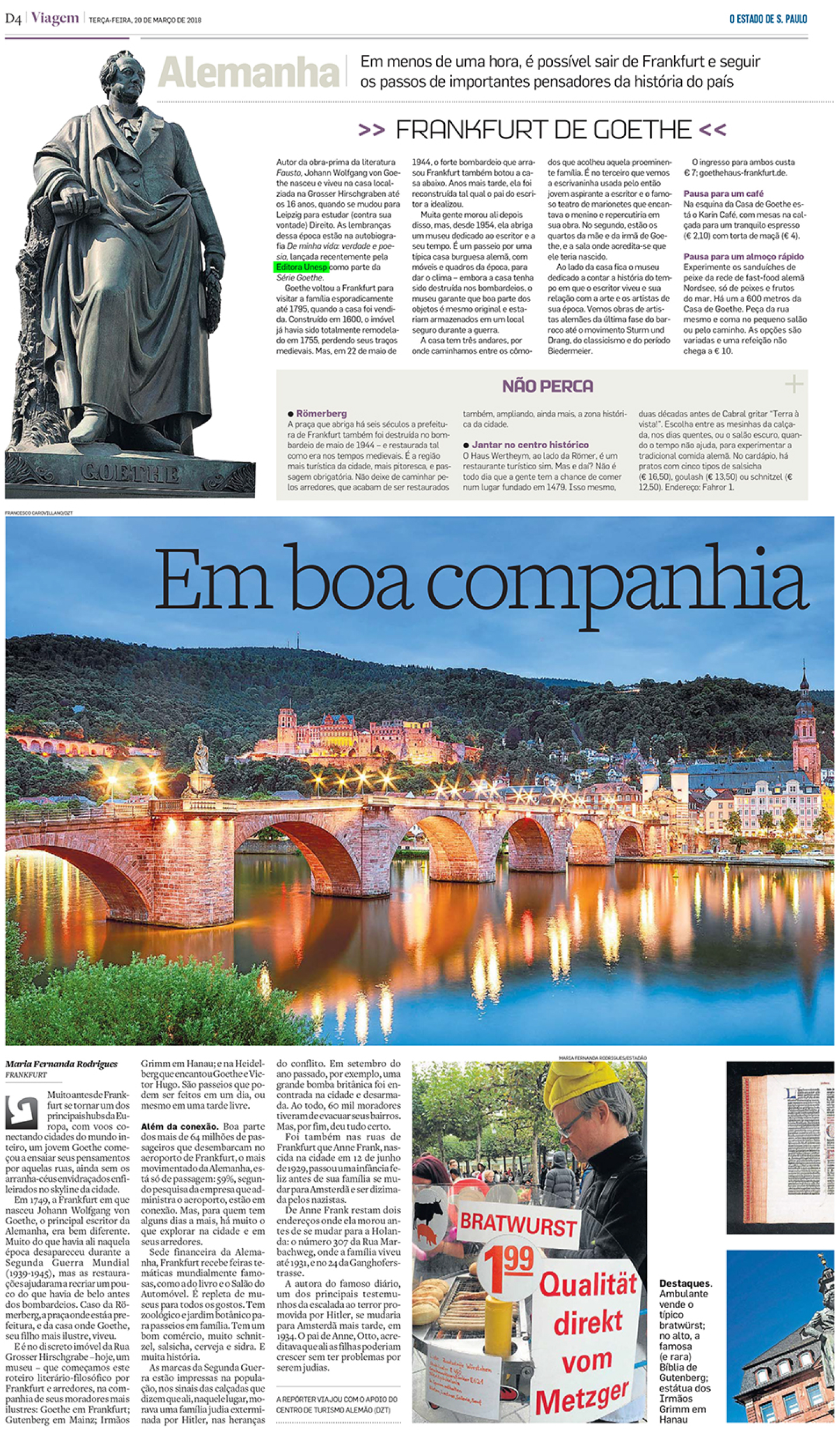 O jornal O Estado de S. Paulo, em sua edição de 20 de março de 2018, em matéria sobre a Feira de Frankfurt, destacou o livro De minha vida: poesia e verdade, de Johann Wolfgang von Goethe. Na obra, o mestre alemão se debruça sobre sua própria história, desde sua infância, e sobre sua relação com os homens do seu tempo. Desfilam aos olhos do leitor suas impressões sobre política, arte, história e metafísica.