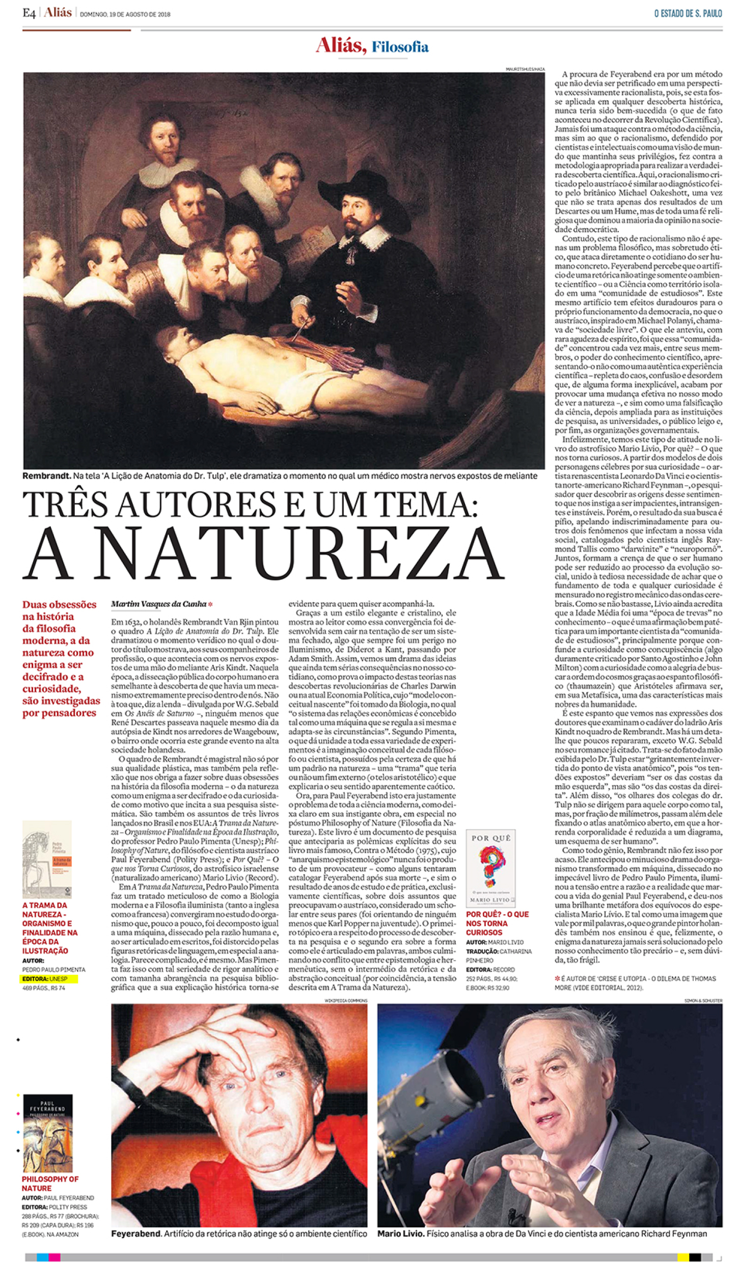 O caderno Aliás, do Estadão, em sua edição de 19 de agosto, recomendou a leitura do lançamento A trama da Natureza: organismo e finalidade na época da Ilustração, de Pedro Paulo Pimenta.