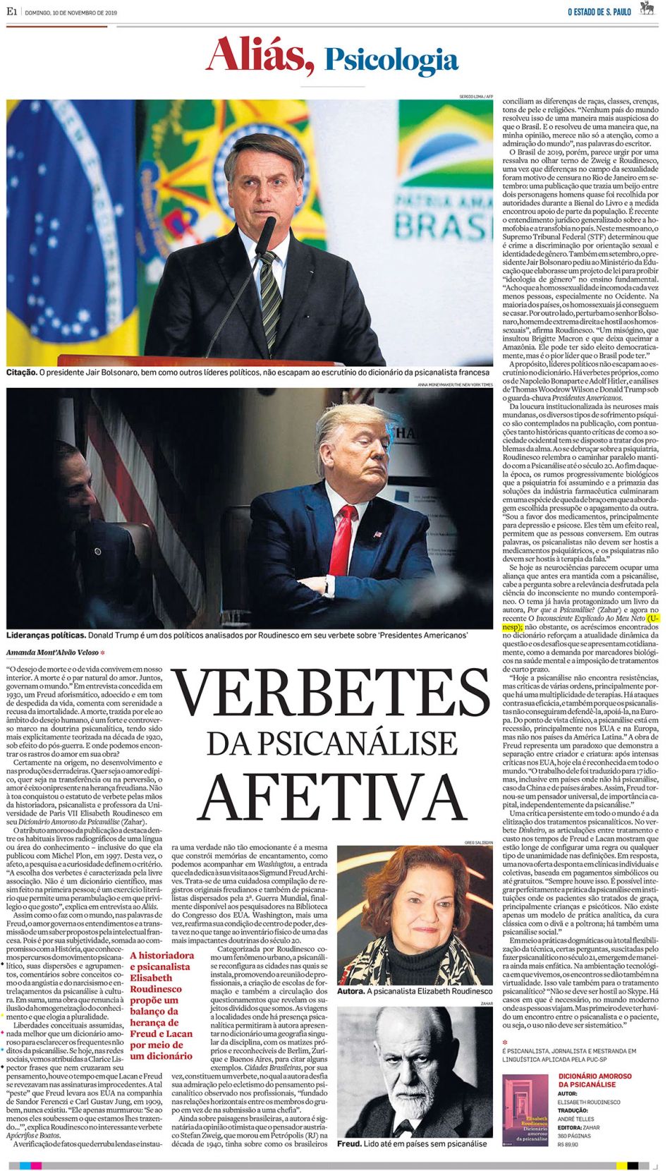 O Estado de S. Paulo, em sua edição de 10 de novembro de 2019, recomendou a leitura de O inconsciente explicado ao meu neto, de Elisabeth Roudinesco. Na obra, a mais conhecida especialista francesa em história da psicanálise confere substância a um elemento que, embora invisível, é determinante para nossa vida.