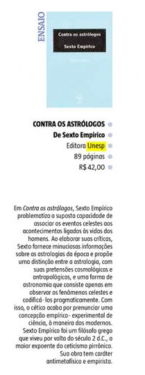 O Estado de Minas, em sua edição de 21 de junho, destacou Contra os astrólogos, de Sexto Empírico. O autor problematiza a suposta capacidade de associar os eventos celestes aos acontecimentos ligados às vidas dos homens.
