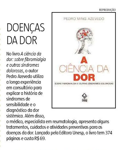 O jornal Estado de Minas indicou a leitura do livro A ciência da dor: Sobre fibromialgia e outras síndromes dolorosas, de Pedro Ming Azevedo.
