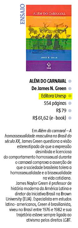 O Estado de Minas, em sua edição de 12 de julho, recomendou a leitura de Além do carnaval - 2ª edição: A homossexualidade masculina no Brasil do século XX, de James N. Green. O livro examina a realidade social e cultural da homossexualidade masculina no Brasil ao longo do século XX.