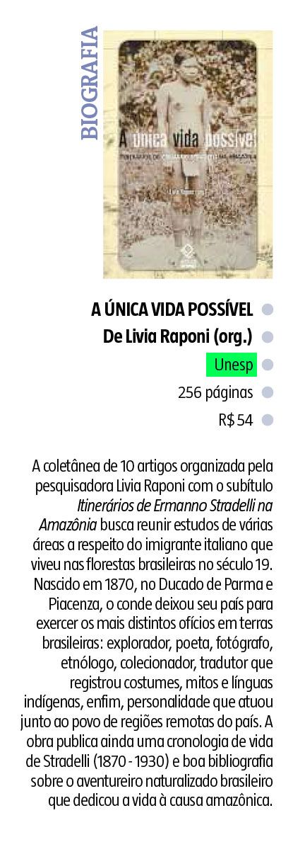 O jornal Estado de Minas indicou, em sua edição de 12 de maio de 2017, o livro A única vida possível: Itinerários de Ermanno Stradelli na Amazônia, organizado por Livia Raponi. A obra ilustra os vários perfis e atuações de Ermanno Stradelli, que desempenhou nos séculos XIX e XX um delicado papel de intérprete e revelador das culturas indígenas amazônicas.