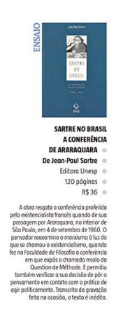 O Estado de Minas recomendou a leitura de Sartre no Brasil – 3ª edição: A conferência de Araraquara, de Jean-Paul Sartre.