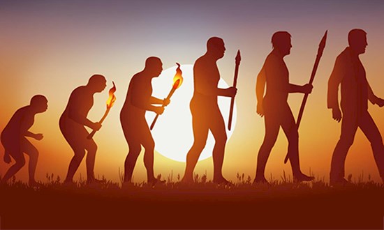 A imagem acima, que ilustra a ideia de que a evolução humana foi linear,