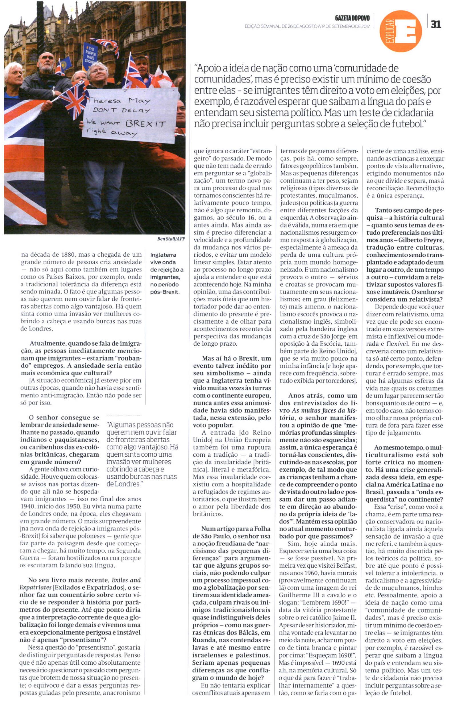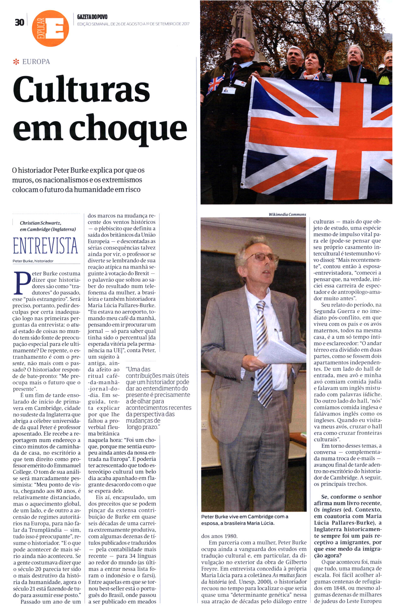 O jornal Gazeta do Povo entrevistou o autor Peter Burke. O historiador fala sobre a questão da imigração, nacionalismo e extremismo. Leia na íntegra abaixo: