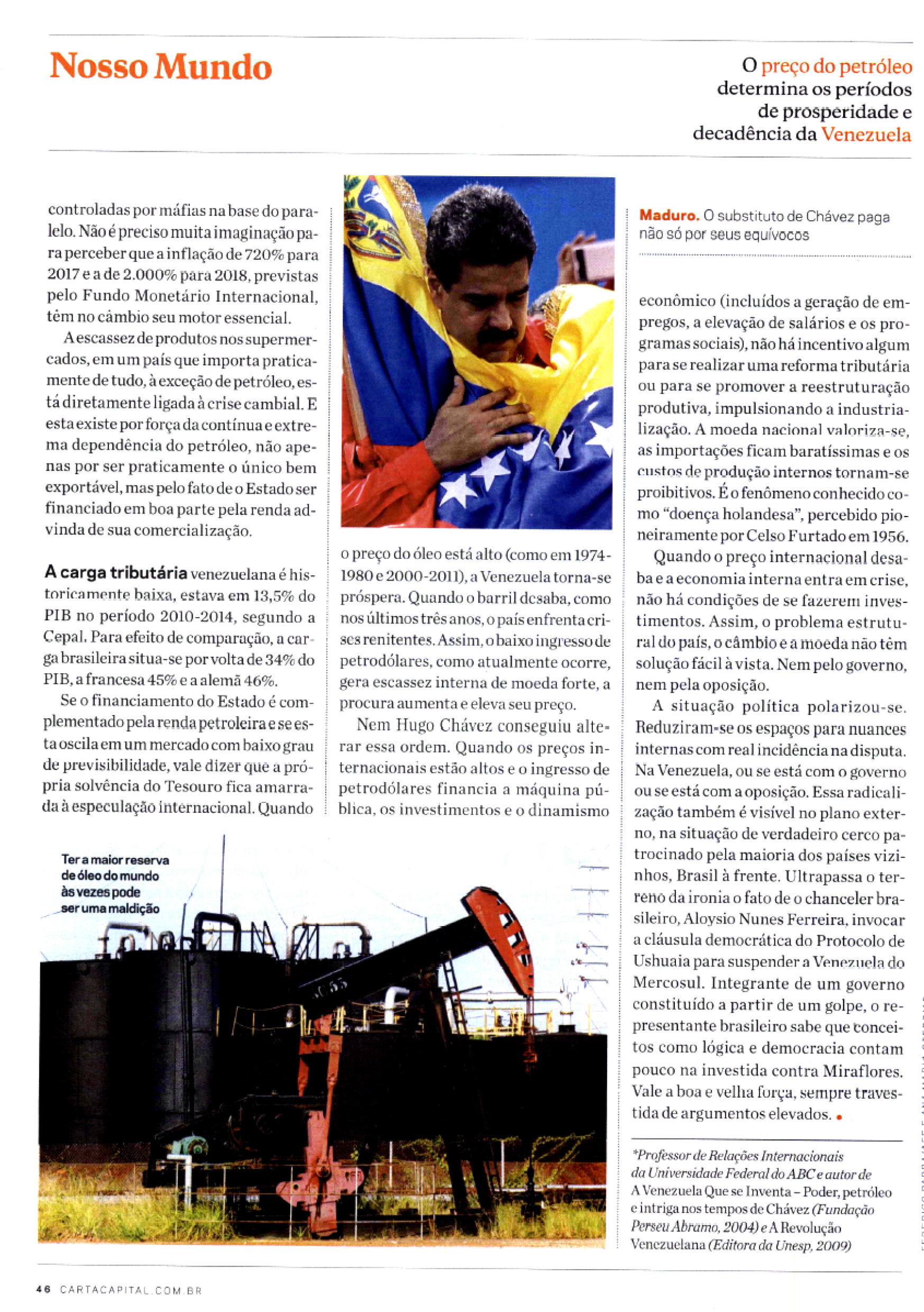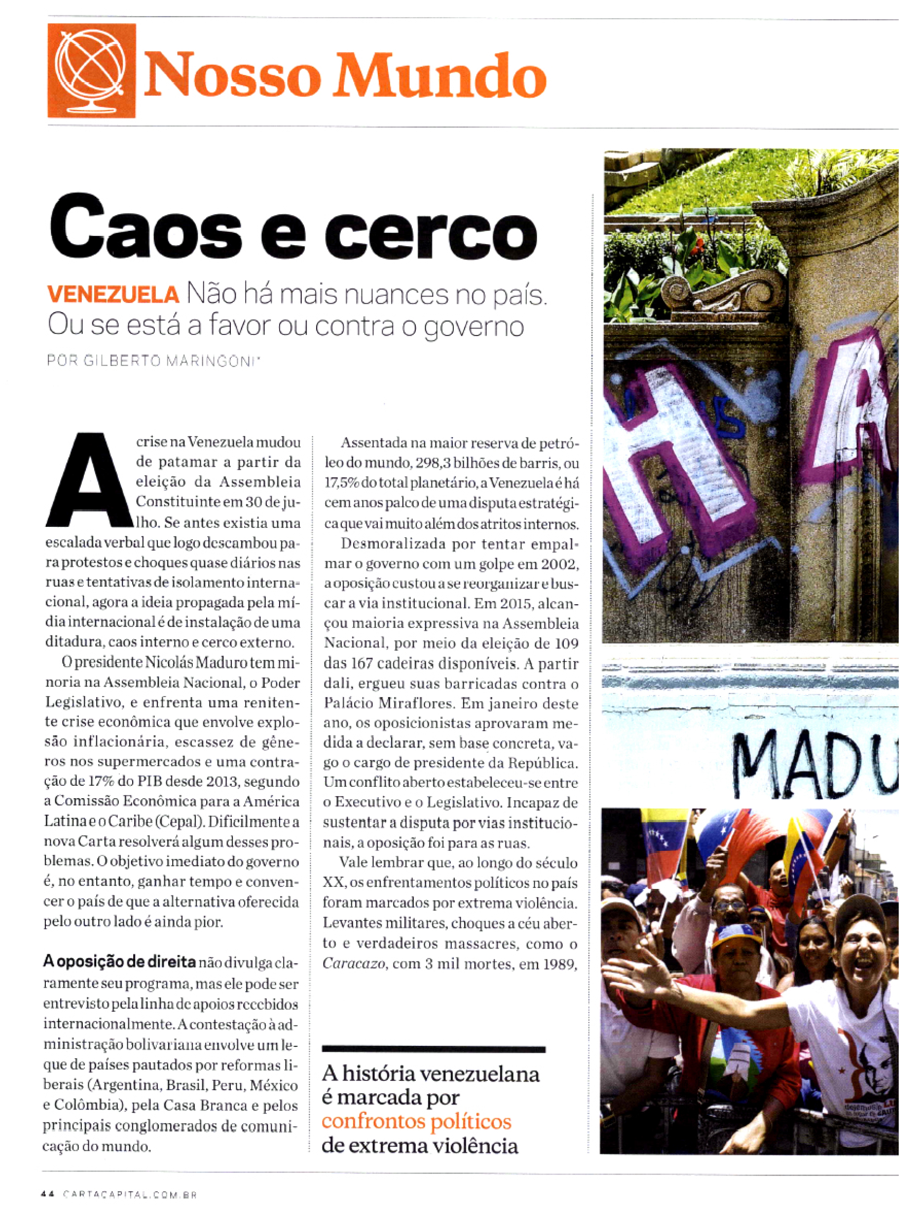 Em artigo para a revista Carta Capital, Gilberto Maringoni, autor do livro A Revolução Venezuelana, analisa a situação política da Venezuela. Leia abaixo na íntegra:
