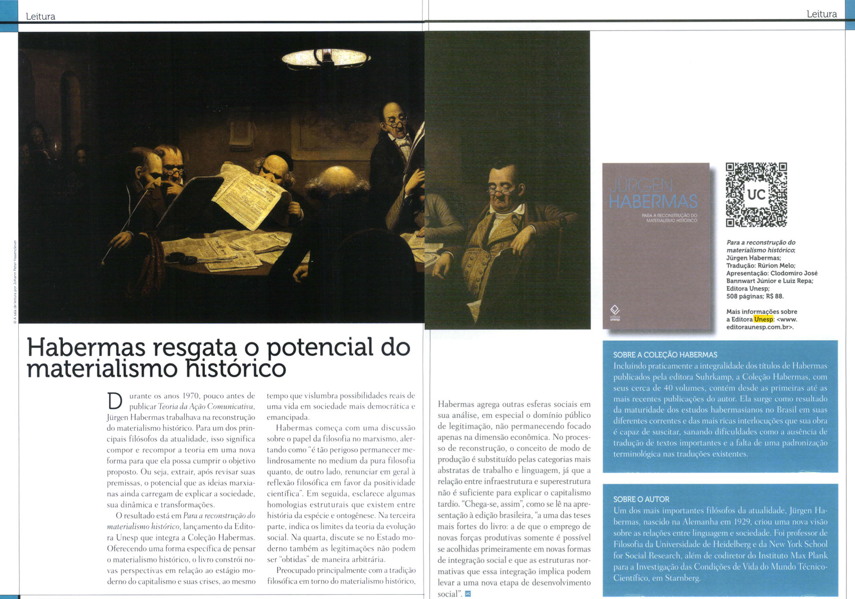 Em sua edição de outubro, a revista Unesp Ciência destacou o livro Para a reconstrução do materialismo histórico, de Jürgen Habermas.