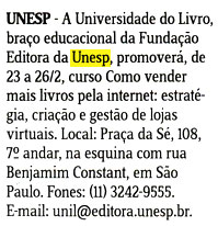 Em sua publicação de 17 de fevereiro, o Jornal do Comércio, do Rio Grande do Sul, recomendou o curso Como vender mais livros pela internet: estratégia, criação e gestão de redes sociais, promovido pela Universidade do Livro entre os dias 23 a 26 fevereiro.