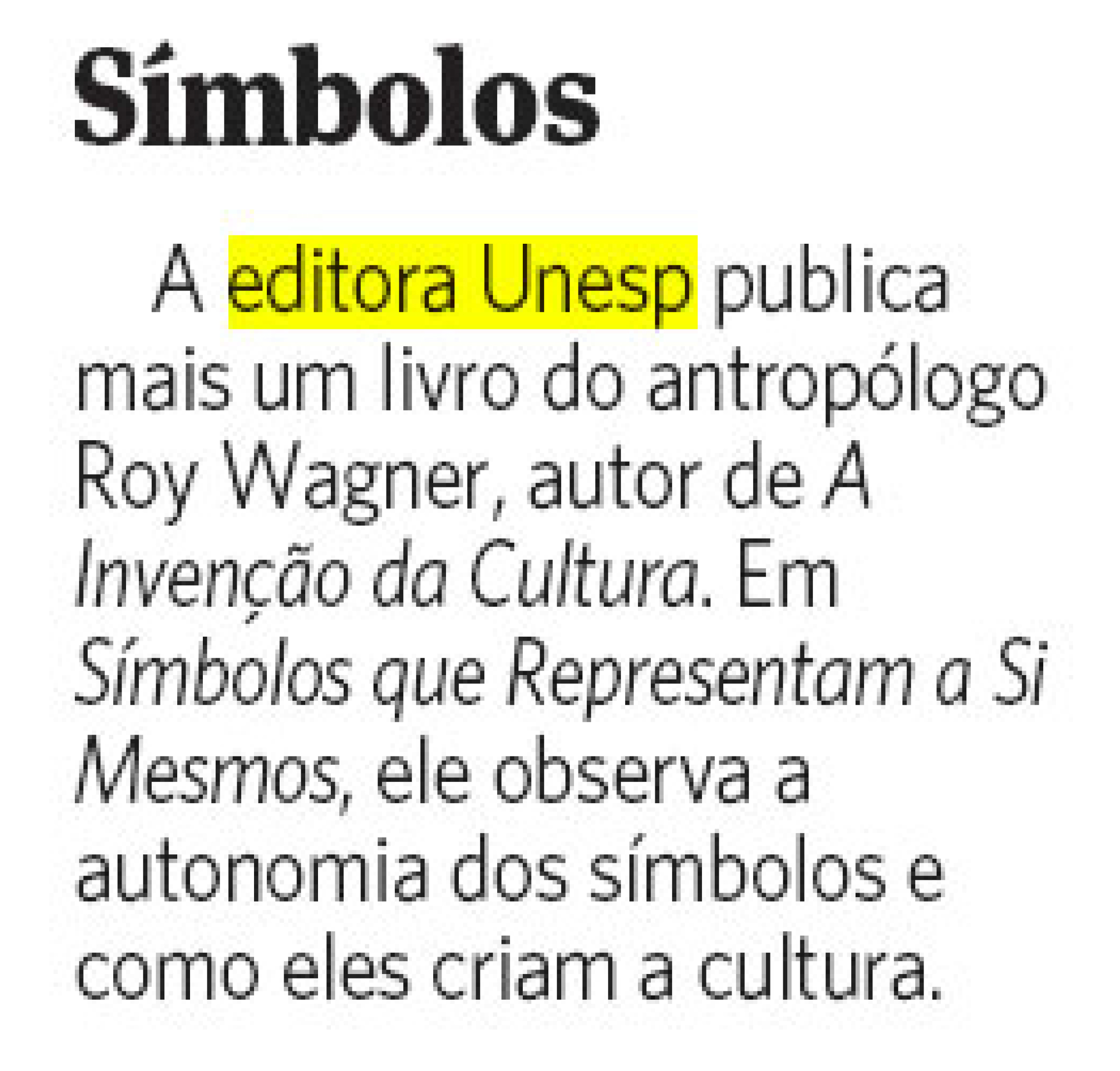 O Jornal do Commércio, em sua edição de 20 de fevereiro de 2018, recomendou a leitura de Símbolos que representam a si mesmos, de Roy Wagner. O livro aborda o sentido como poder organizador e constitutivo na vida cultural. Seu argumento é de que o fenômeno humano é uma ideia única e coerente, organizada mental, física e culturalmente em torno da forma de percepção que chamamos de “sentido”.