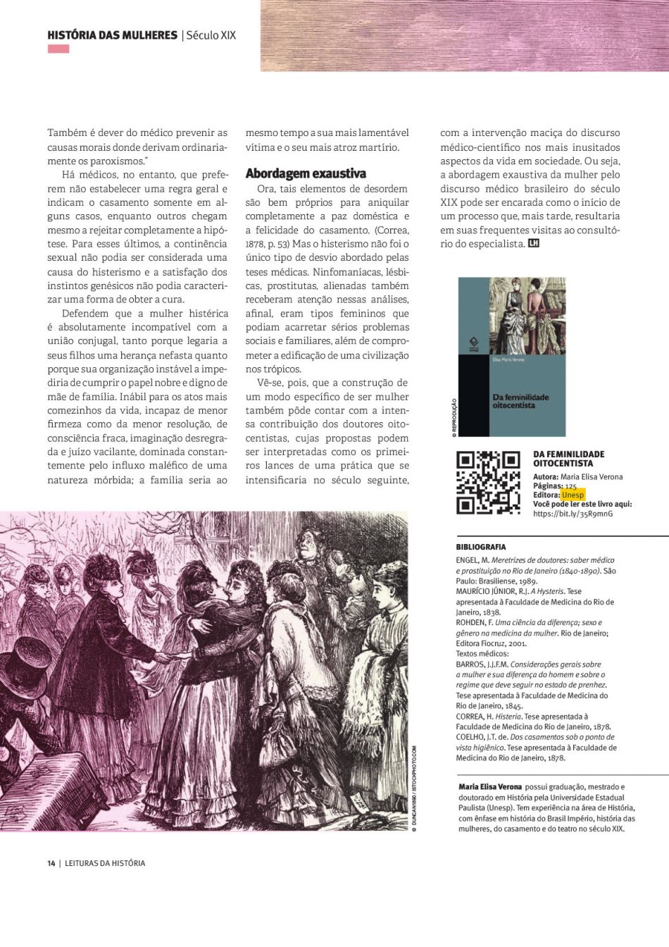A edição de março da revista Leituras da História dedicou cinco páginas à obra Da feminilidade oitocentista, de Elisa Maria Verona, publicação da Editora Unesp.