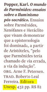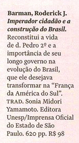 O listão da edição de outubro da revista Quatro Cinco Um recomendou os livros O mundo de Parmênides – 2ª edição: ensaios sobre o iluminismo pré-socrático, de Karl Popper e a reimpressão de Imperador cidadão: e a construção do Brasil, de Roderick J. Barman.