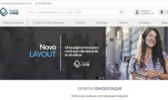 A Livraria Unesp acaba de colocar ao ar seu novo site. Com um design muito mais moderno e responsivo, o e-commerce da Editora Unesp e das principais editoras do Brasil mudou de plataforma e reúne ofertas, sugestões de leitura, os mais vendidos e muitas opções de livros nas mais variadas categorias. Nessa fase de inauguração, todos os livros estão com 15% de desconto. Para os clientes já cadastrados, será solicitada a alteração de senha (que pode ser a mesma já utilizada), apenas para confirmar seus dados. Os clientes que estão com compras em andamento receberão em breve um comunicado sobre como rastrear seus pedidos. Confira aqui o novo layout e aproveite o as ofertas: www.livrariaunesp.com.br