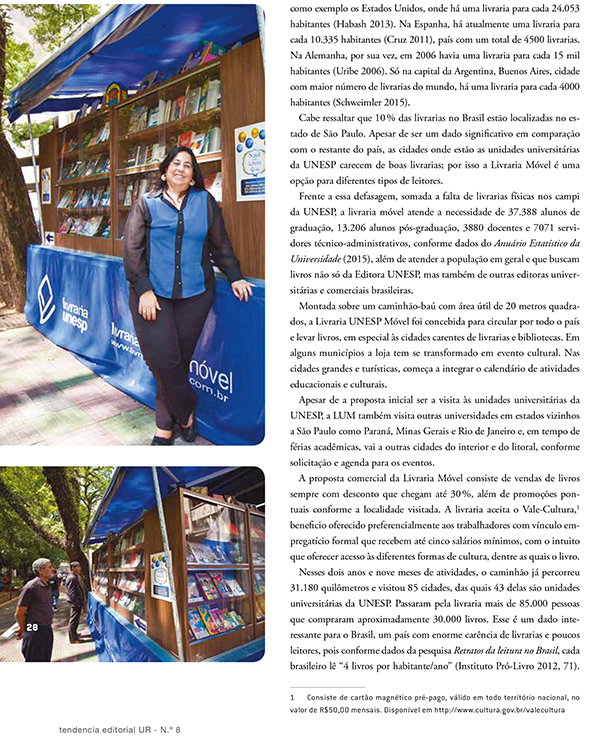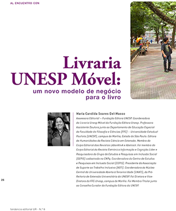 A publicação conta ainda com uma entrevista com a coordenadora da Livraria Unesp Móvel, profa. dra. Maria Candida Soares Del-Masso.