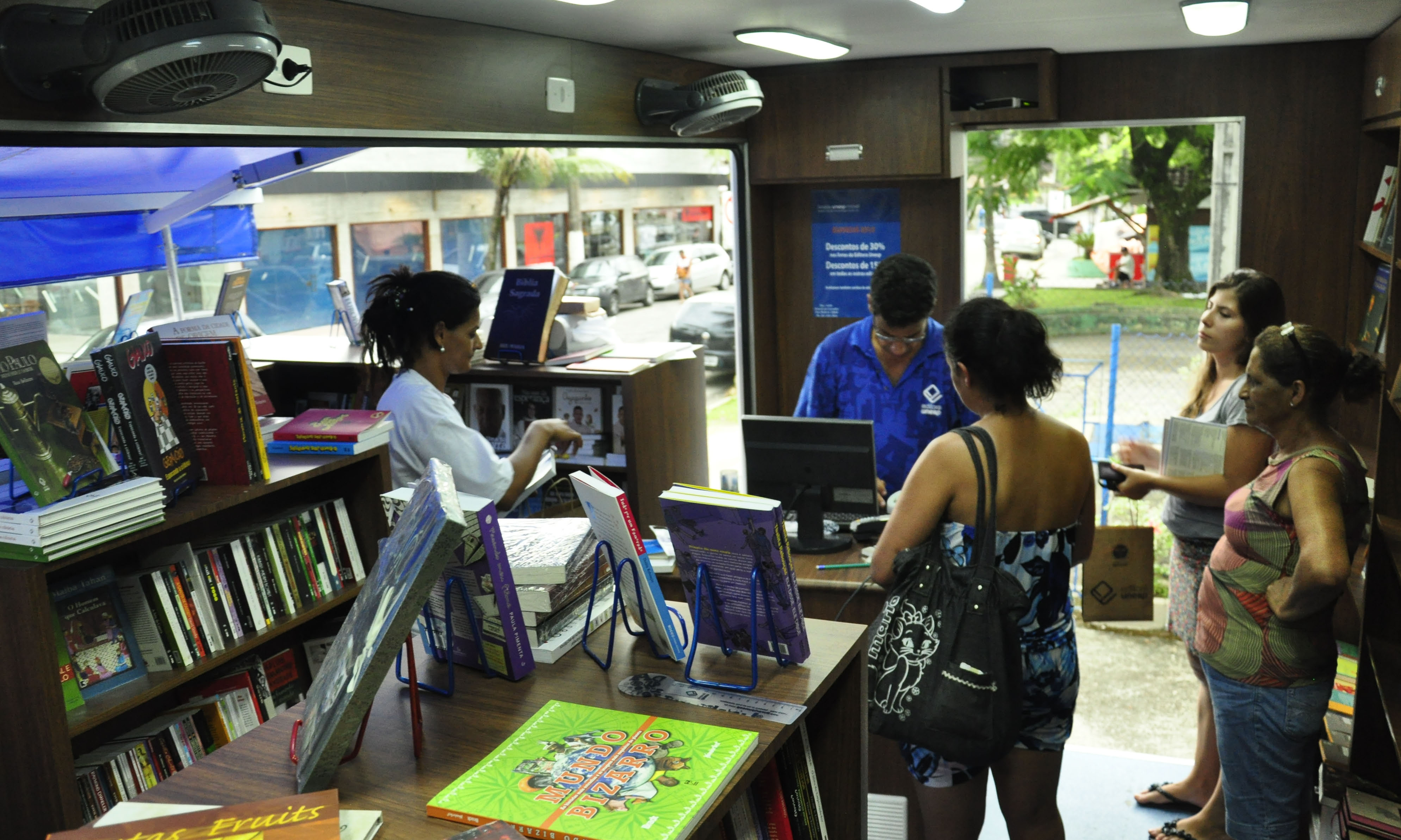 Neste circuito, o book-truck oferece descontos de 30% nos livros da Editora Unesp, 10% nos das demais editoras e mais 5% (exceto nas promoções) para os inscritos nos eventos.