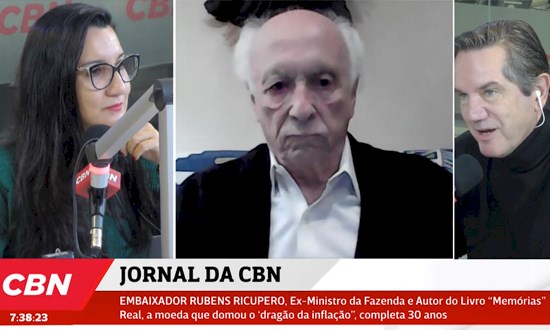 A grande imprensa segue destacando o lançamento do livro Memórias, do embaixador e ex-ministro da Fazenda Rubens Ricupero. Neste dia 1º de julho, aniversário do Plano Real, ele concedeu entrevista ao vivo a Milton Jung e Cássia Godoy, no Jornal da CBN.