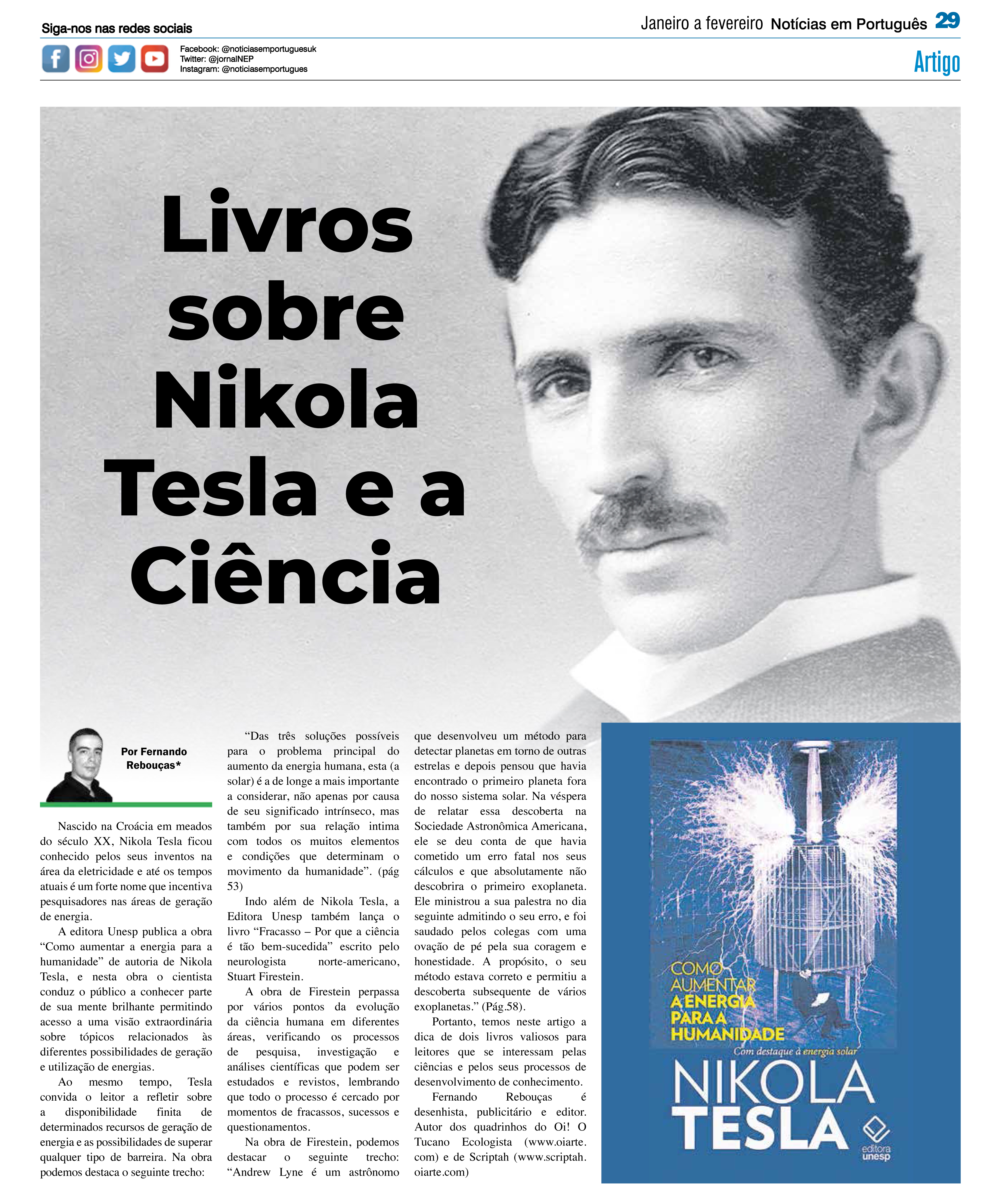 O jornal Notícias em Português, que circula entre a comunidade brasileira em Londres, indicou Como aumentar a energia para a humanidade, de Nikola Tesla, e Fracasso, de Stuart Firestein.