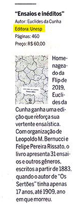 O jornal O Globo, em sua edição de 29 de dezembro de 2018, destacou o lançamento Ensaios e inéditos, de Euclides da Cunha, organizado por Leopoldo M. Bernucci e Felipe Pereira Rissato. O livro, que inaugura a série de inéditos em prosa de Euclides da Cunha, os leitores terão acesso a um número significativo de ensaios do autor, cuja produção se inicia em 1883, quando ele tinha apenas 17 anos, e termina em 1909, ano de sua morte. Trata-se de um total de 31 composições de Euclides que, em seu conjunto, reforçam a vertente ensaística de sua admirável escritura e que ficou consolidada definitivamente em Os sertões.