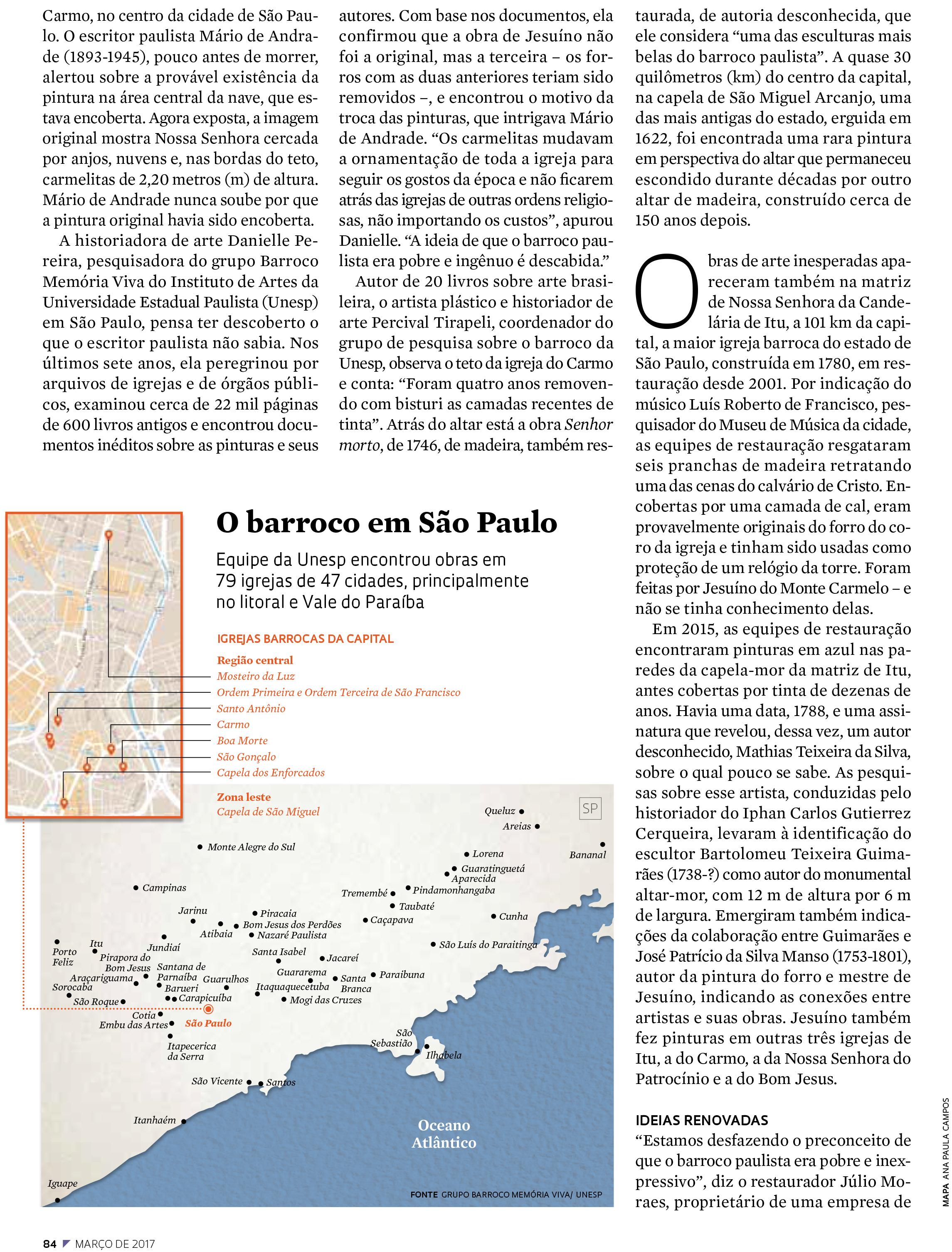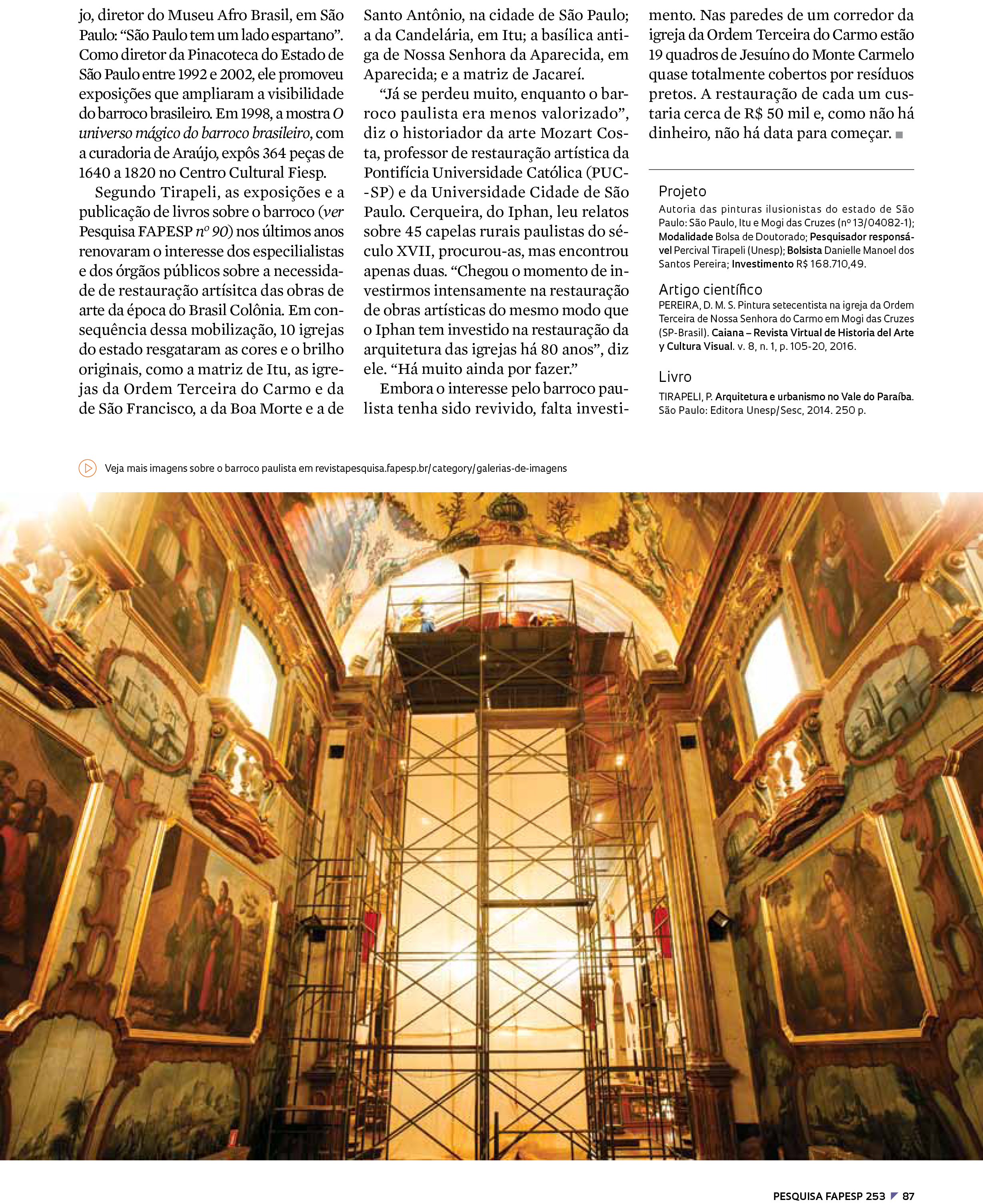 Revista Fapesp destaca, em sua edição de março de 2017, o barroco brasileiro retratado no livro Arquitetura e urbanismo no Vale do Paraíba, de Percival Tirapelli. A obra apresenta uma ampla e profunda pesquisa sobre a fundação de vilas ao redor das capelas no Vale do Paraíba paulista durante o período colonial e sua expansão na época imperial, com as igrejas reformadas ao gosto eclético.