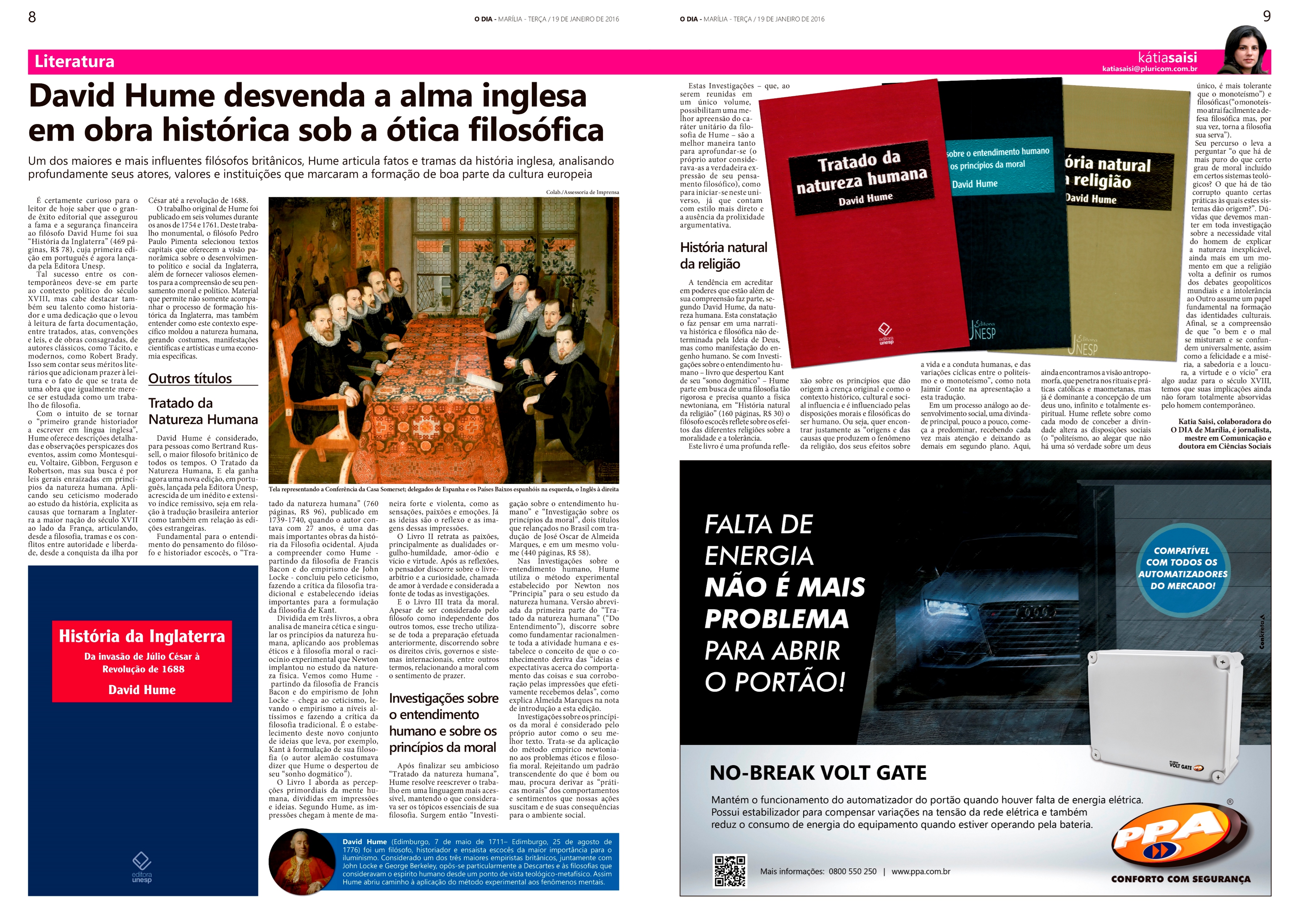 Fundamental para o entendimento do pensamento do filósofo e historiador escocês, o “Tratado da natureza humana” (760 páginas, R$ 96), publicado em 1739-1740, quando o autor contava com 27 anos, é uma das mais importantes obras da história da Filosofia ocidental. Ajuda a compreender como Hume - partindo da filosofia de Francis Bacon e do empirismo de John Locke - concluiu pelo ceticismo, fazendo a crítica da filosofia tradicional e estabelecendo ideias importantes para a formulação da filosofia de Kant.