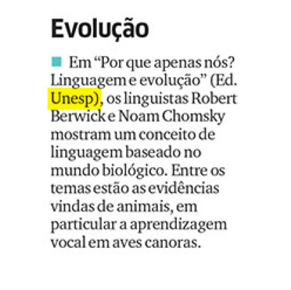 O jornal Diário do Nordeste, em sua edição de 24 de dezembro de 2017, indicou o lançamento Por que apenas nós? Linguagem e evolução, de Noam Chomsky e Robert C. Berwick. A coleção de ensaios aborda a terceira questão mencionada: a evolução da linguagem. Apesar de afirmações em contrário, a verdade é que sempre houve um forte interesse sobre a evolução da linguagem, desde o início da gramática gerativa na metade do século XX.