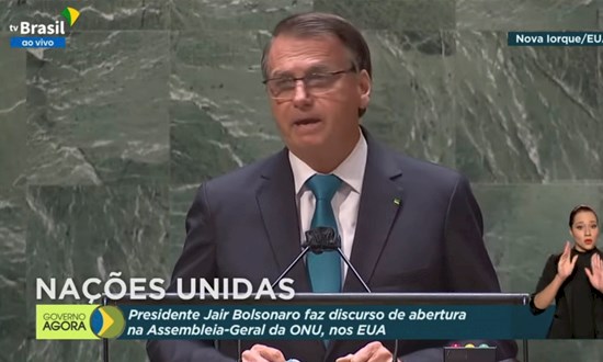Jair Bolsonaro discursa na Assembleia Geral da ONU (Foto: TV Brasil/UN TV/Reprodução)