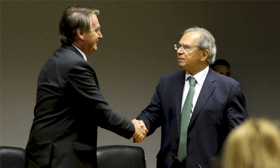Jair Bolsonaro e Paulo Guedes depois de entrevista para falar sobre a quebra do teto de gastos
