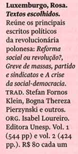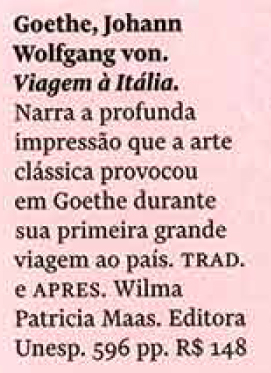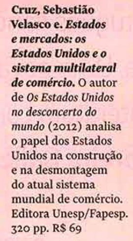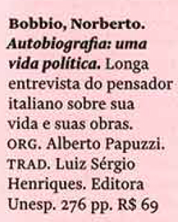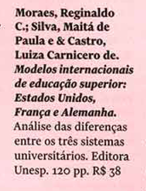 A revista Quatro Cinco Um, em sua edição de março, indicou diversos lançamentos da Editora Unesp: Modelos internacionais de educação superior, de Reginaldo C. Moraes, Maitá de Paula e Silva e Luiza Carnicero de Castro; Glossário de Geografia Humana e Econômica, organizado por Eliseu Savério Sposito; História dos crimes e da violência no Brasil, organizado por Mary Del Priore e Angélica Müller; Autobiografia: uma vida política, de Norberto Bobbio; Coletânea Rosa Luxemburgo; Viagem à Itália, de Johann Wolfgang von Goethe; Alzheimer, de Alessandro Ferrari Jacinto e Marisa Folgato e Estados e mercados, de Sebastião Carlos Velasco e Cruz.