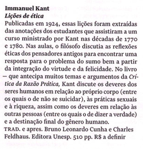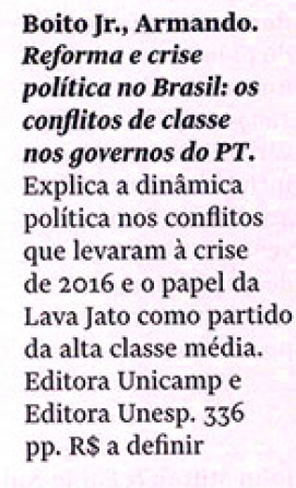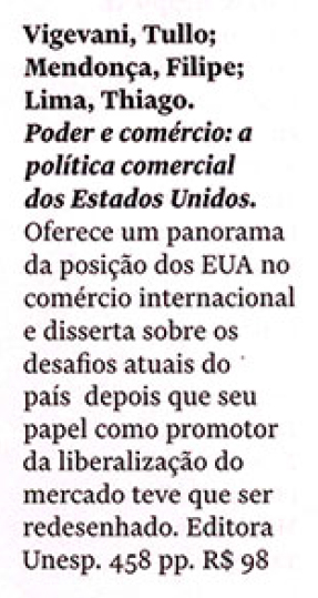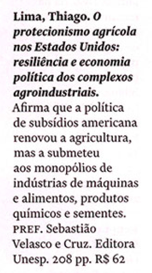 A revista Quatro Cinco Um, em sua edição de junho, indicou a leitura dos lançamentos: Monadologia e Sociologia, de Gabriel Tarde; Protecionismo agrícola nos Estados Unidos, de Thiago Lima; Poder e comércio, de Tullo Vigevani, Filipe Mendonça e Thiago Lima; Lições de ética, de Immanuel Kant; Saberes em viagem em manuais pedagógicos, de Vivian Batista da Silva e Reforma e crise política no Brasil, de Armando Boito Jr.