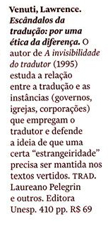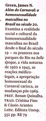 O listão da revista Quatro Cinco Um recomendou os livros Escândalos da tradução: por uma ética da diferença, de Lawrence Venuti e Além do carnaval - 2ª edição: a homossexualidade masculina no Brasil do século XX, de James N. Green.