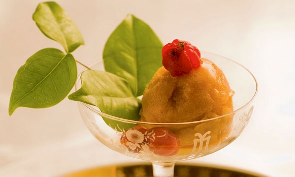Deixe esfriar, incorpore o purê de pitanga e o suco de limão. Misture bem e coloque num recipiente metálico, cubra e leve ao congelador. Quando estiver congelado, bata no processador ou no liquidificador.