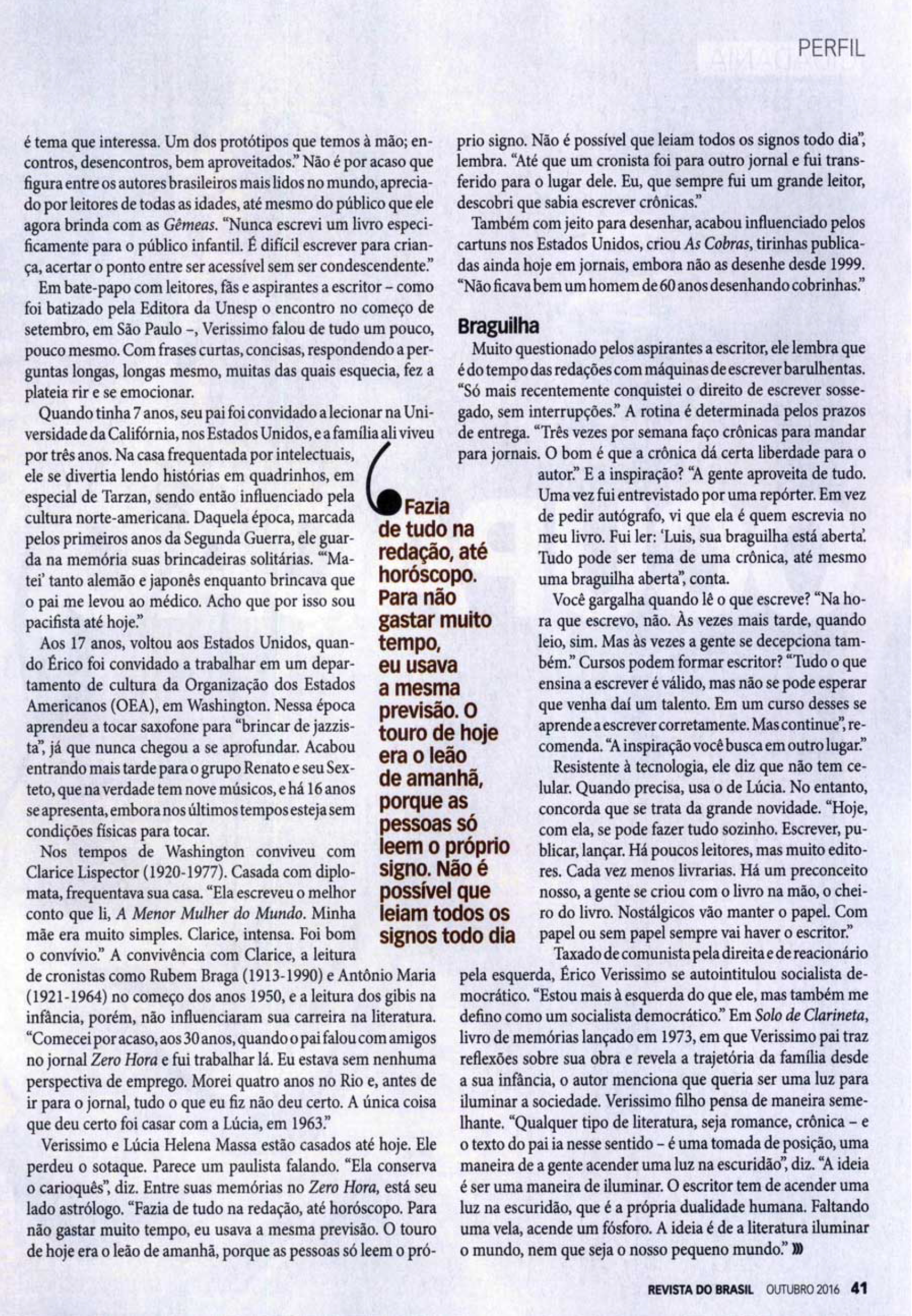A Revista do Brasil publicou, no último dia 1º de outubro, um perfil sobre a trajetória de Luis Fernando Verissimo, contada na edição de abertura da série Encontro com os escritores da Universidade do Livro.