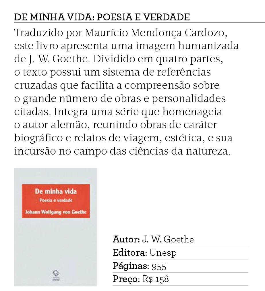 O Suplemento Pernambuco, em sua edição de dezembro de 2017, recomendou a leitura do livro De minha vida: poesia e verdade, de Johann Wolfgang von Goethe. Na obra, o mestre alemão se debruça sobre sua própria história, desde sua infância, e sobre sua relação com os homens do seu tempo. Desfilam aos olhos do leitor suas impressões sobre política, arte, história e metafísica.