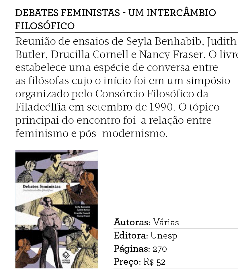 O Suplemento Pernambuco recomendou a leitura dos livros Debates feministas: um intercâmbio filosófico, de Seyla Benhabib, Judith Butler, Drucilla Cornell e Nancy Fraser e Ensaios e inéditos, de Euclides da Cunha e organizado por Leopoldo M. Bernucci e Felipe Pereira Rissato.