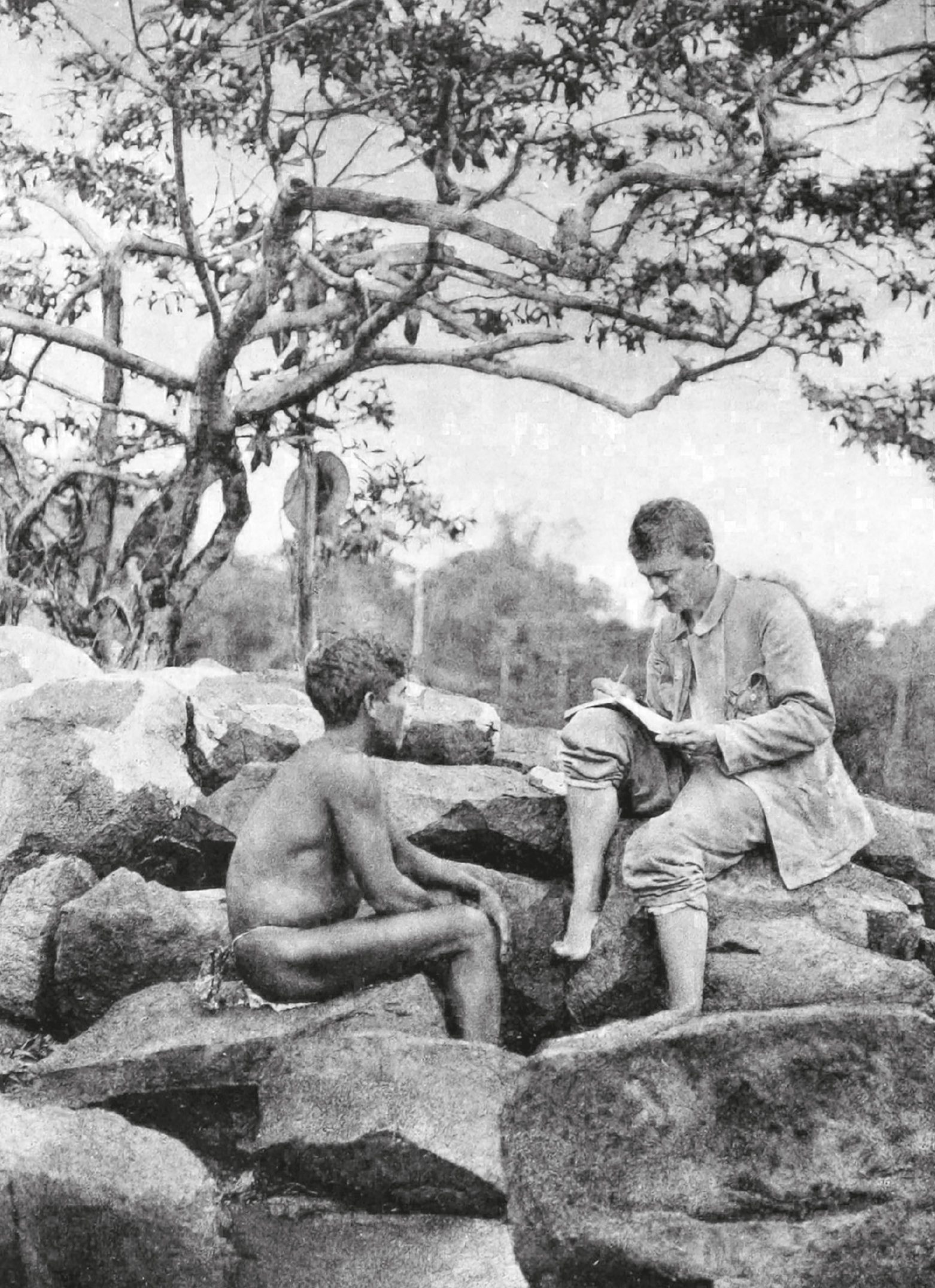 Theodor Koch-Grünberg (sentado), Hermann Schmidt (esquerda) e Romeu