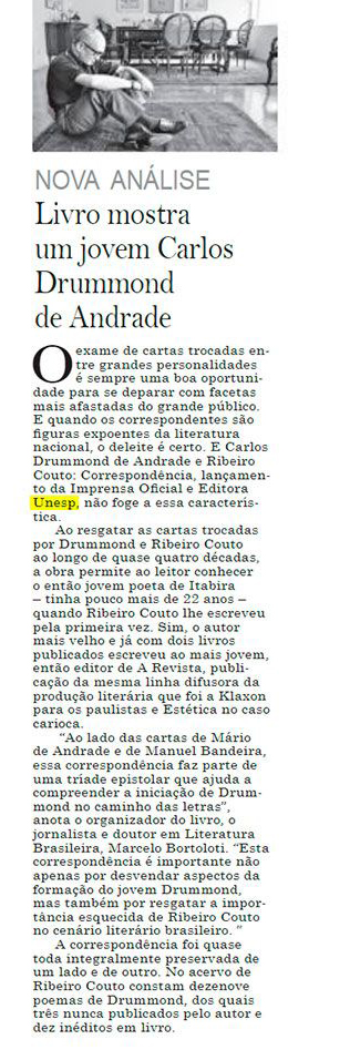 A Tribuna Independente, de Maceió, recomendou a leitura de Carlos Drummond de Andrade e Ribeiro Couto: correspondência, organizado por Marcelo Bortoloti. A correspondência publicada na obra procura iluminar essa interlocução entre dois dos grandes intelectuais brasileiros do século XX, ao mesmo tempo que contribui para o resgate recente de Ribeiro Couto, esse importante personagem da história literária nacional.